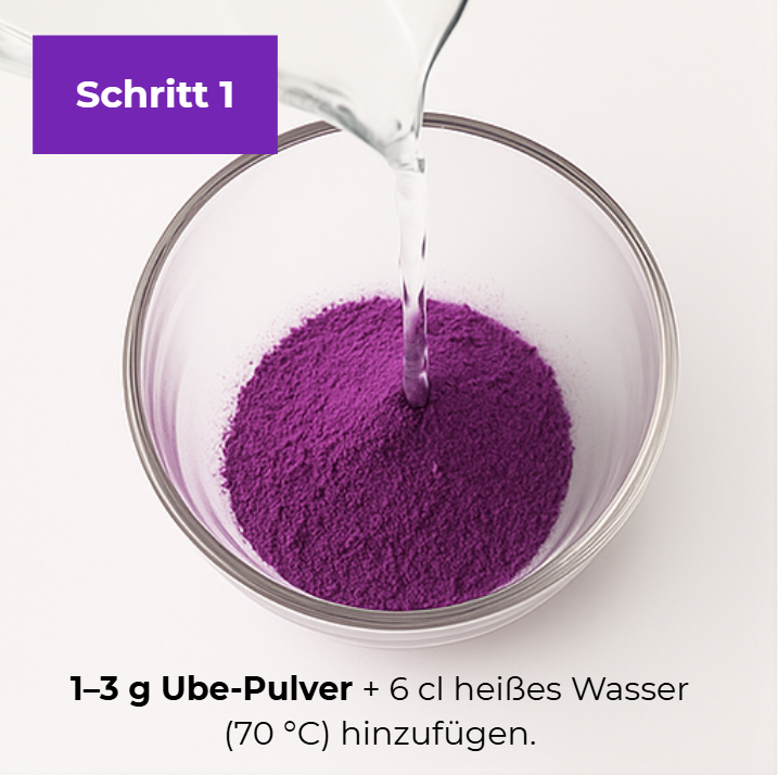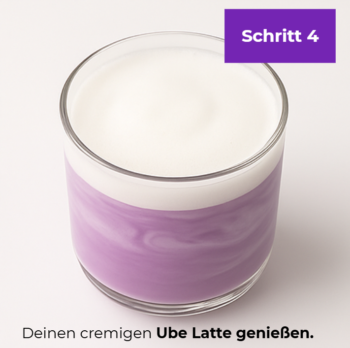 Ube (ausgesprochen oo-beh) ist eine violette Yamswurzel aus den Philippinen. Sie ist von Natur aus süß, cremig und reich an Antioxidantien. In den Philippinen wird sie seit Generationen in Desserts verwendet – und jetzt macht sie auch dein tägliches Getränk zu etwas ganz Besonderem.