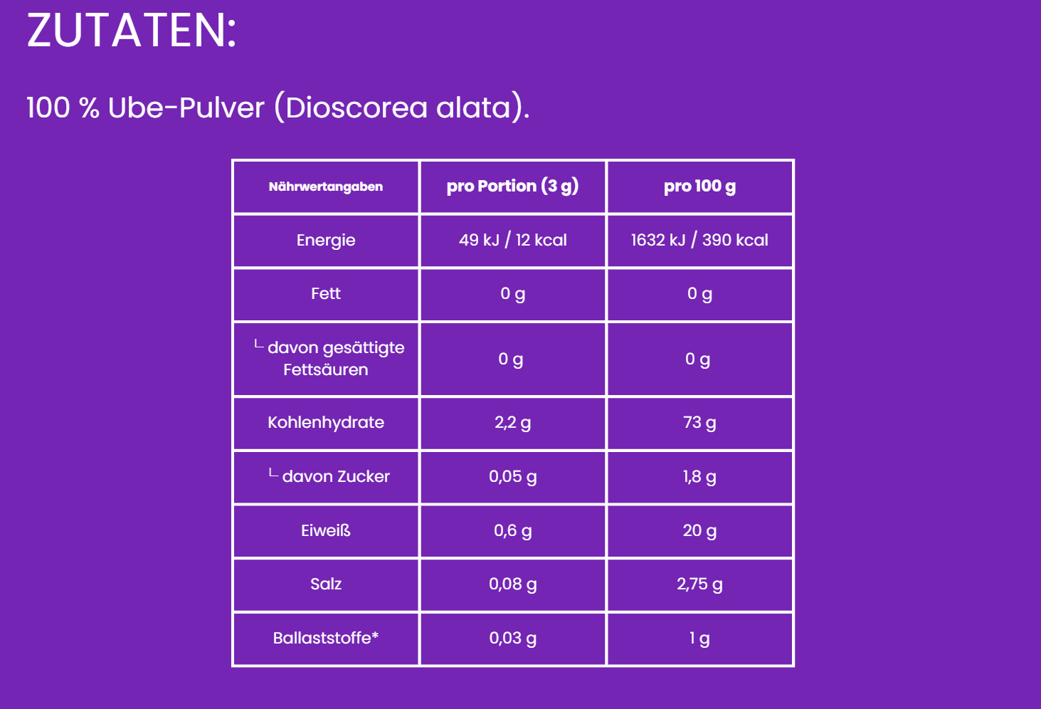 Ube überzeugt nicht nur durch seine außergewöhnliche Farbe – es ist auch ein echtes Kraftpaket an wertvollen Nährstoffen.